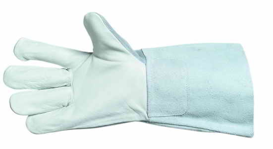 CRANE - svářečské rukavice celokožené z lícové hověziny v dlani, hovězí štípenky na hřbetu, s tuhou 15 cm širokou manžetou, bez podšívky.
