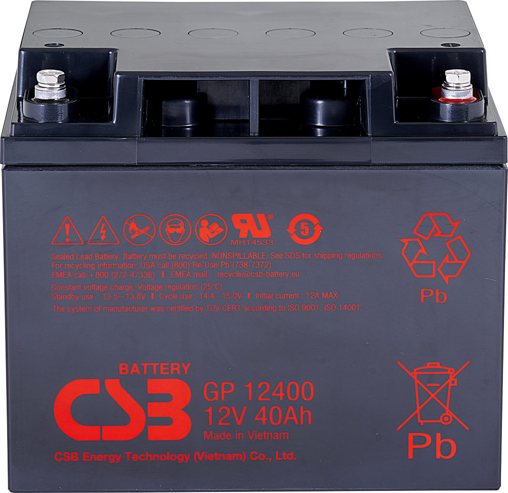 GP12400 12V 40Ah - záložní, bezúdržbový, VRLA, uzavřený, akumulátor od CSB Battery. Technologie AGM. Určený nejen pro záložní zdroje UPS, EZS, EPS atd.