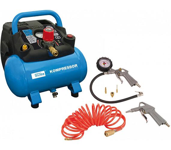 Příslušenství: 1 manometr, Regulátor tlaku, Bezpečnostní ventil, Vypouštěcí ventil, Vypínač, Integrovaný tlakový spínač, Úložný prostor, Ofukovací pistole, 5m spirálová hadice, Hustilka na pneumatiky, Adaptér na ventily, Adaptér na nafukování matrací
