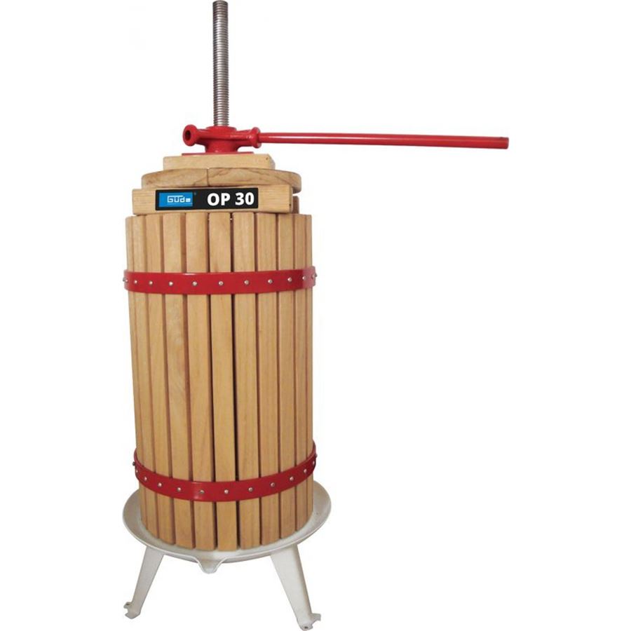 Konstrukce: robustní ocelové vřeteno (s obouruční pákou), lisovací koš z bukového dřeva, lakovaná sběrací miska (průměr: 370 mm), základna vč. otvorů pro montáž napevno.