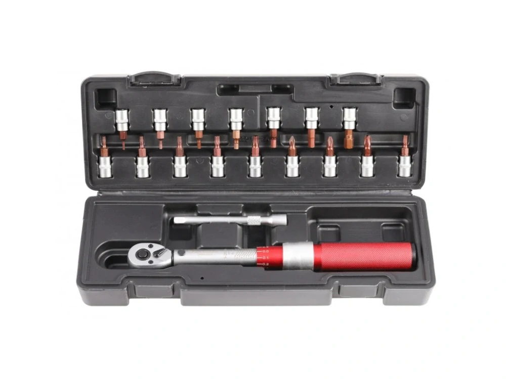 - QUATROS QS59003 Momentový klíč 1/4", 3-20 Nm, přesný 3%, se zástrčnými hlavicemi, 18 ks