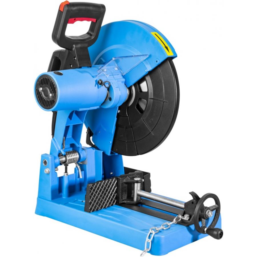 Konstrukce: pilový kotouč 355 x 25,4 x 2,3 mm (SK), ochranný (kyvný) kryt kotouče, robustní ocelový podstavec (vč. integrované nádobky na prach), držadlo pro pohodlné přenášení.