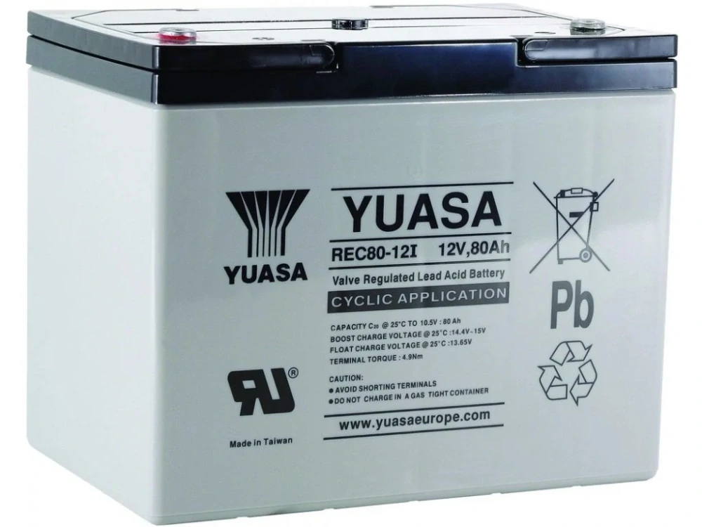 REC80-12 12V/80Ah cyklický záložní, bezúdržbový, VRLA, uzavřený, akumulátor od firmy YUASA s navýšenou kapacitou oproti řade NPC. Technologie AGM. Navržený pro cyklické aplikace, ale i záložní zdroje UPS, EZS, EPS atd.